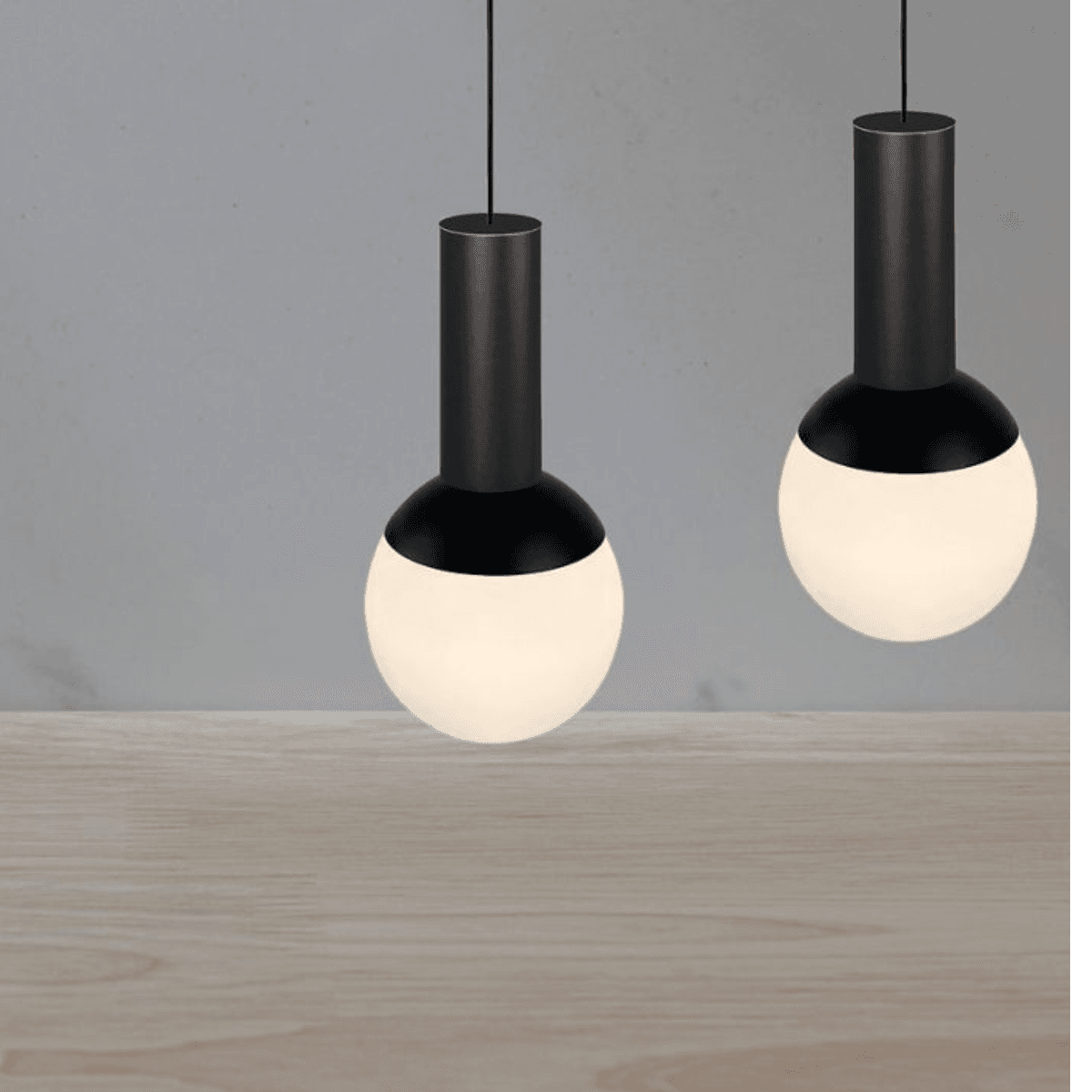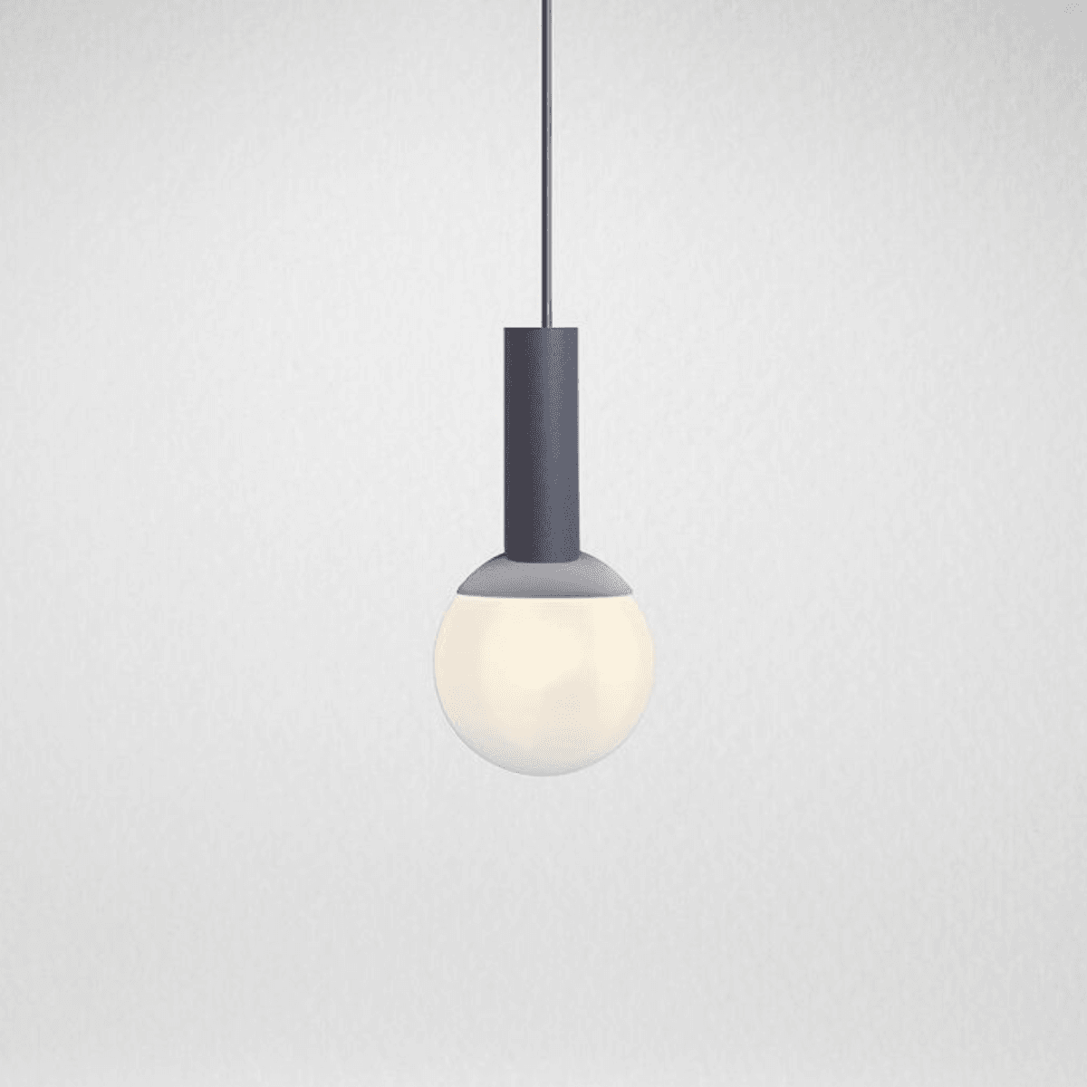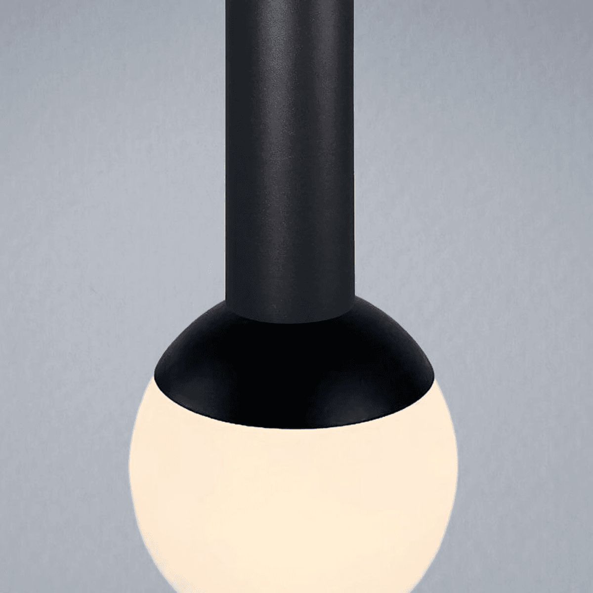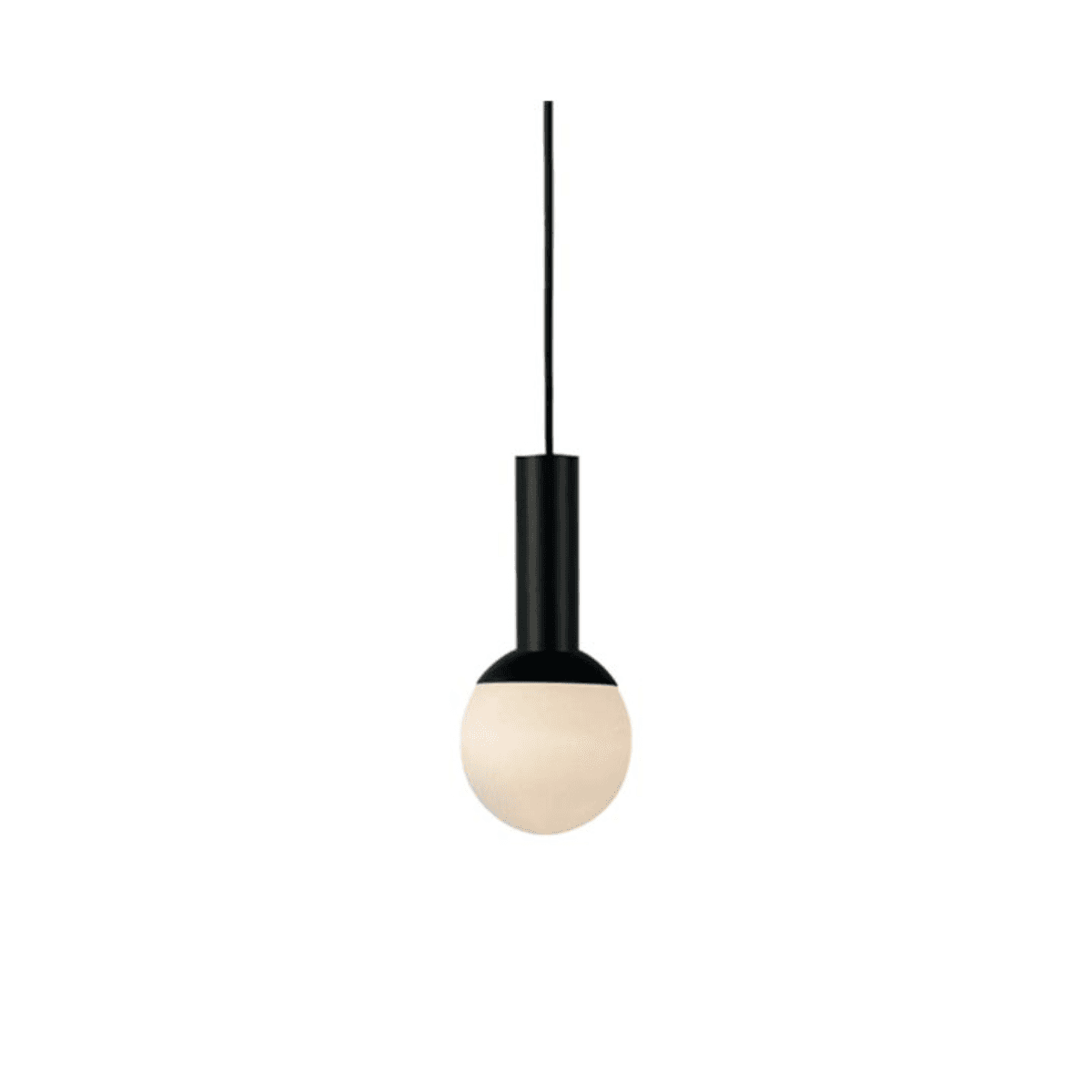 Pendente em formato de esfera em metal e vidro com cabo ajustável.