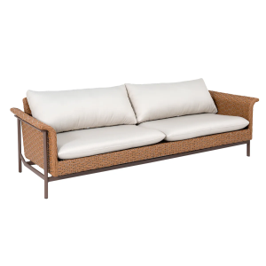 Almofada de assento fixa com costura em pesponto simples e debrum composê. Almofada de encosto solta com opções aberta (menor que a largura do assento) ou fechada (mesma largura do assento), ambas acompanham decorativa de 60x55cm e lombar de 80x40cm. Braço e encosto fixos com costura em pesponto simples. Base em aço carbono nos acabamentos pintura MTX ou metalizada.